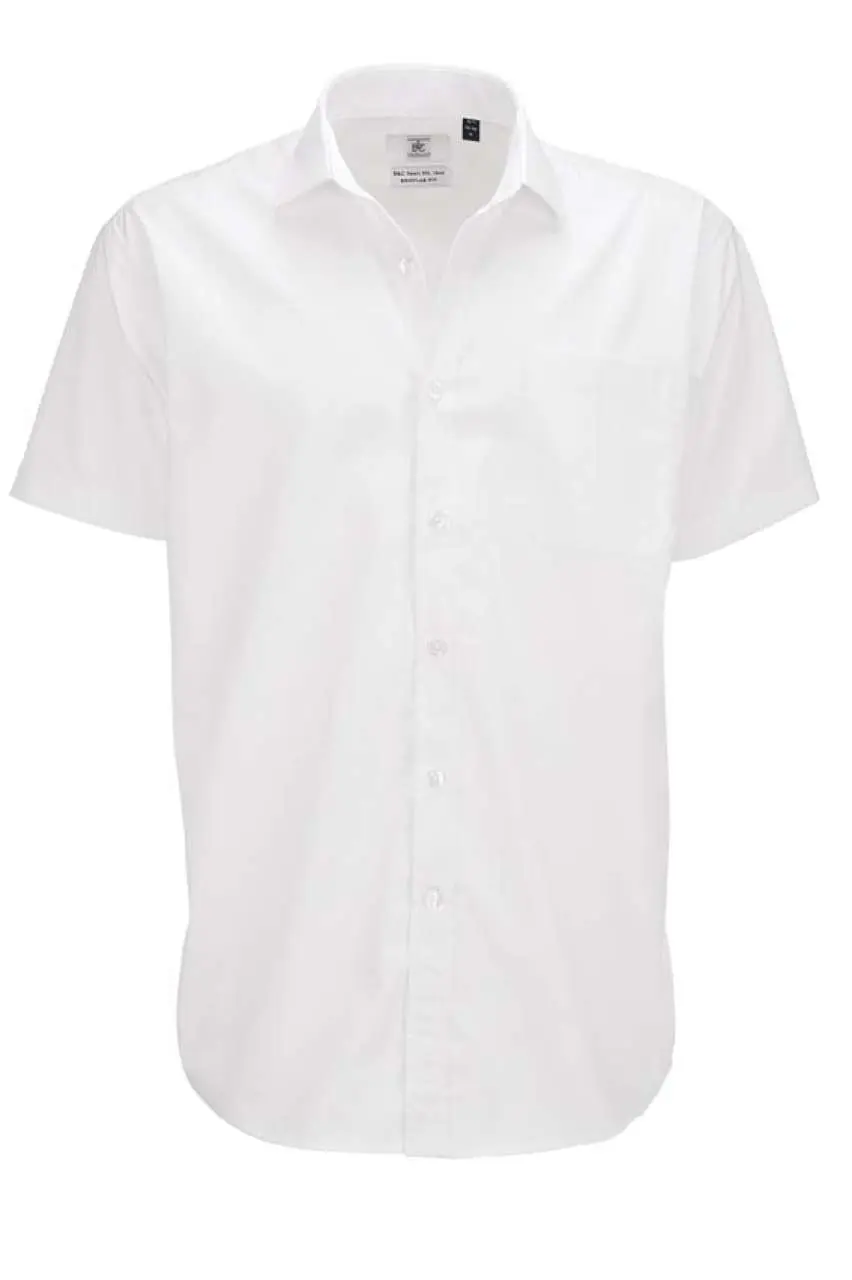 Qualitative polycotton poplin with Easy Care finish Cut-away collar Cross stitched mother-of-pearl effect buttons Folded hem sleeves Left chest pocket Back yoke with 2 overstitched side pleats Inside lap seams for perfect finish Horizontal last buttonhole Curved bottom hem