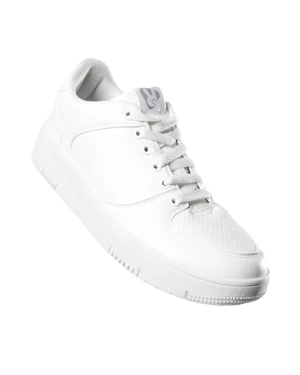 Classic trainers. Closure with metal eyelets and matching flat laces. Upper: PU and micro-perforated PU - sole: TPR - interior: padded polyester mesh. Foamed insole.