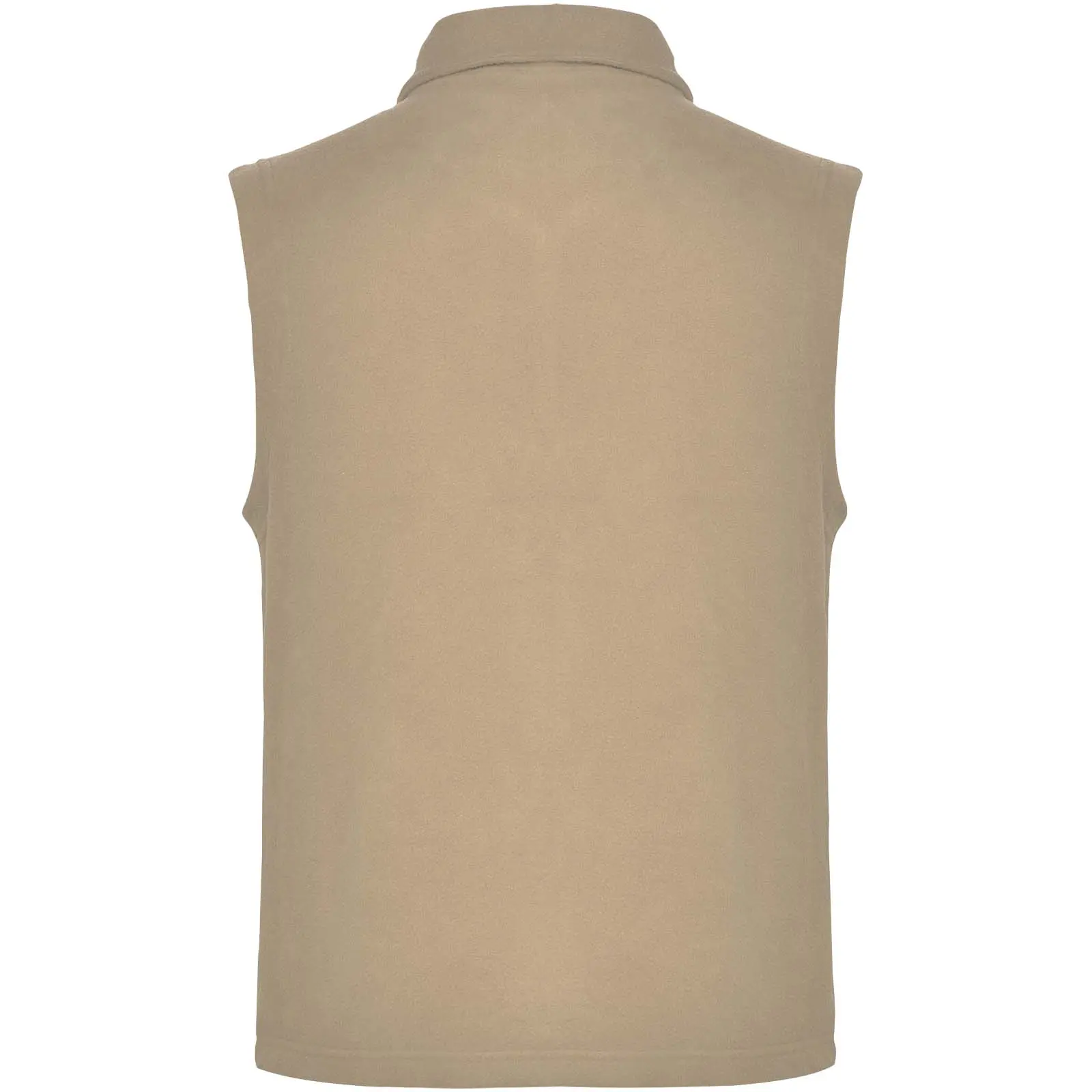 Fleece vest with polo neck and matching zipper. Side pockets with matching zipper. Removable label. The model is 185 cm and is wearing size M.