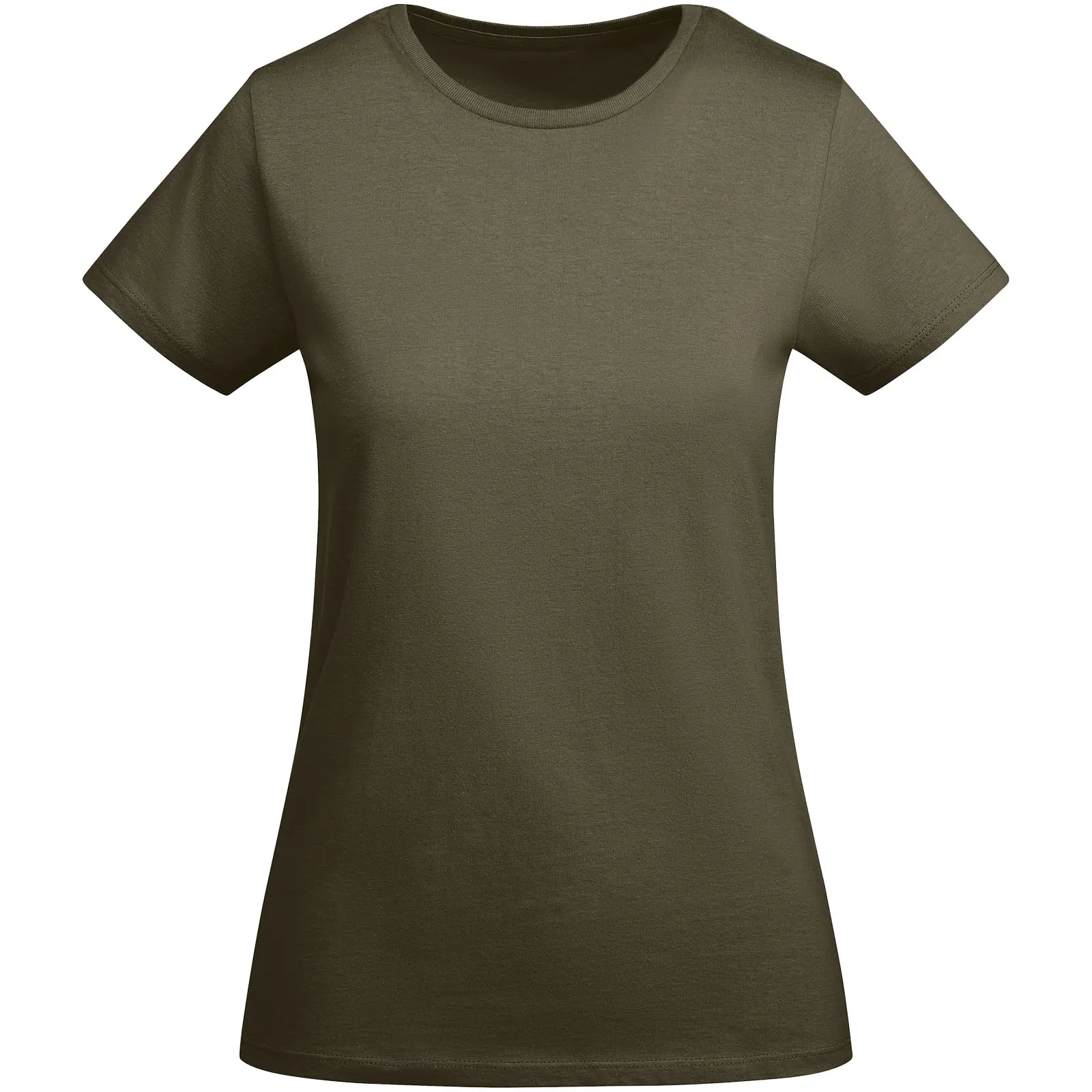Fitted short-sleeve t-shirt for women in organic cotton. 1x1 ribbed crew neck. Reinforced covered seams in collar. Side seams. Removable label.