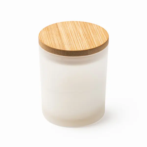 Scented candle in a translucent glass with bamboo lid. Vanilla scent.