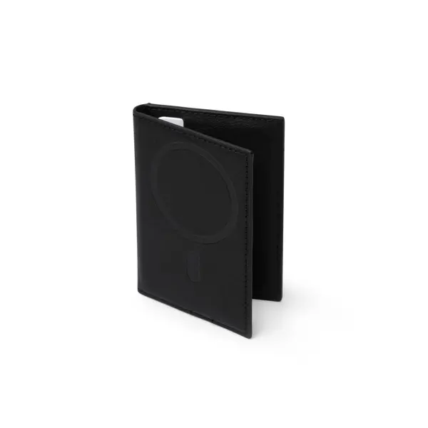 Recycled PU magnetic card holder. Additional adhesive ring included. Presentation individually in white box.