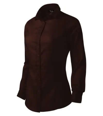 tailored fit cut with side seams, back part with a double yoke, breast and waist darts, two-piece shirt collar, front parts finished by placket, long sleeves with angled cuffs and 2 buttons, pearl buttons in the shell fabric colour (1 spare extra), curved bottom edge