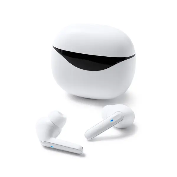 Wireless noise-cancelling earbuds. In-built control panel with touch technology. Hands-free function. Charging case with rechargable battery and Type C connection. Cable included.