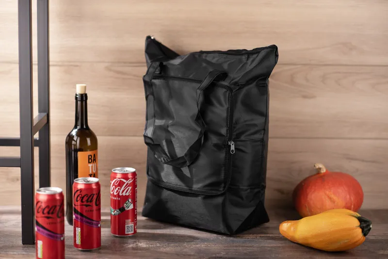 PINO is a practical foldable bag with a thermal insulation layer, perfect for shopping, the beach, or picnics. It has long handles for comfortable carrying. Thanks to its thermal insulation, it keeps the temperature of the stored products. It is zippered, and when folded, it takes up little space.