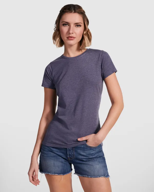 Slightly fitted short-sleeved t-shirt at the waist. 1x1 ribbed round neck. Taped neckline in matching fabric.