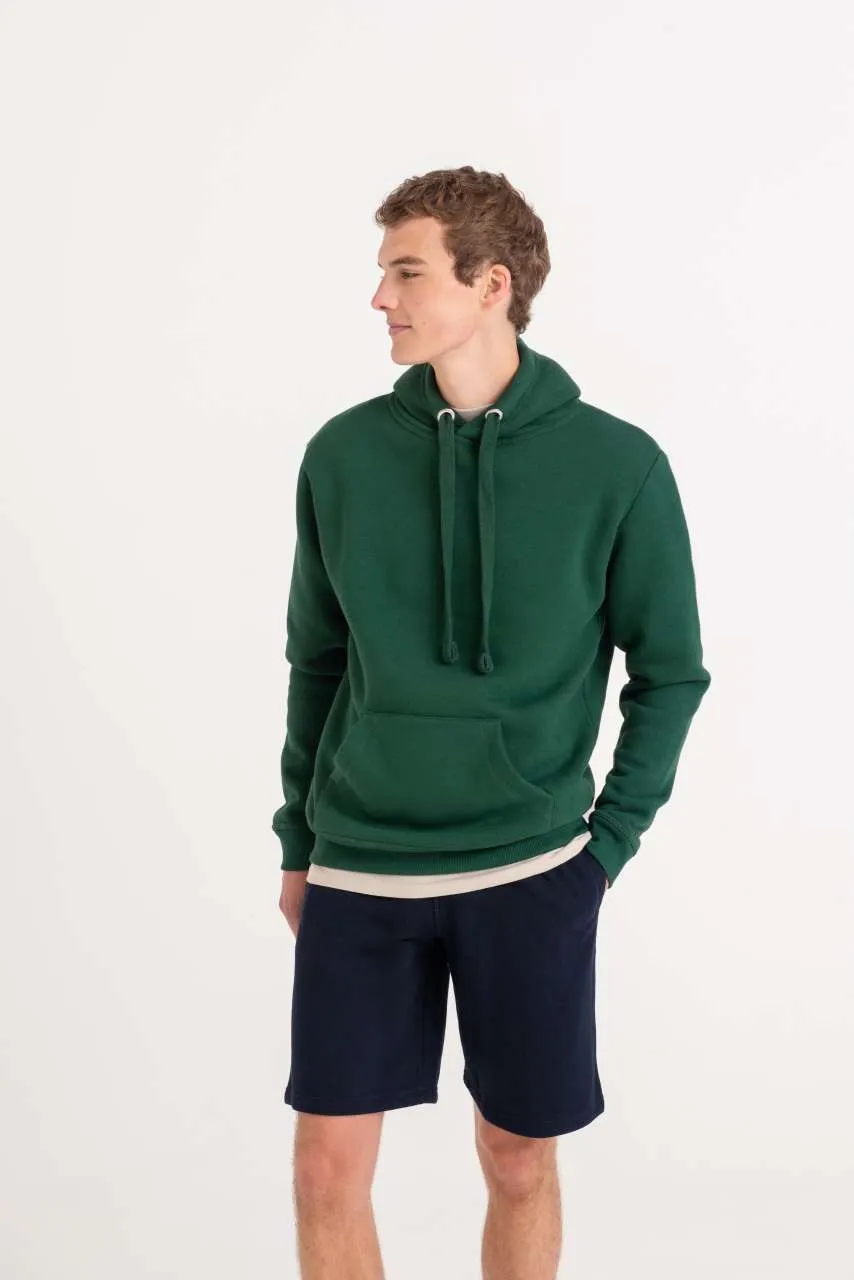 70% Ringspun Cotton/30% Polyester Standard fit Heavyweight 3 panel fabric hood with single jersey fabric inner Flat lace drawcords Kangaroo pouch pocket Ribbed cuffs and hem Flat lock stitching detail on pocket Brushed inner fleece Twin needle stitching detail Tear away label 100% cotton faced fabric
