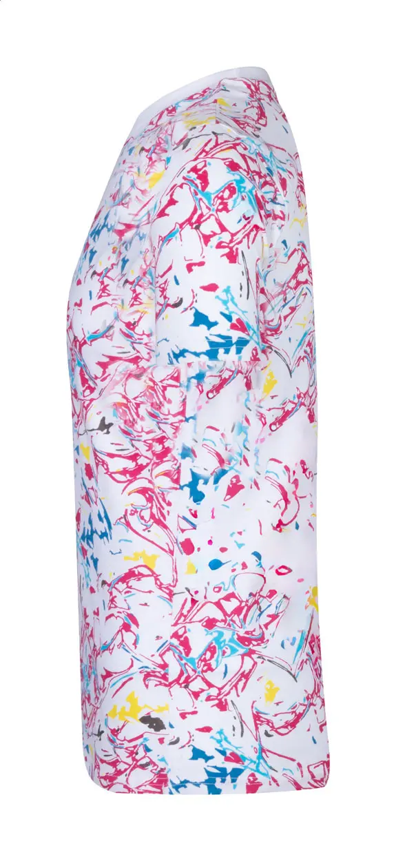 Adult round neck T-shirt in 100% cotton, with colourful pattern. 150 g/m².
