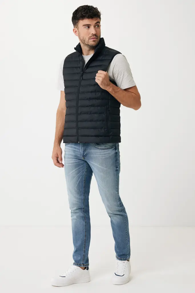 Men’s medium fit bodywarmer made from 100% post-consumer recycled polyester. The bodywarmer is fully quilted with 100% recycled polyester pearl filling. It has a reversed zipper at the front and practical zip pockets in the side panel seams. All zippers have extra zip pullers in matching colour for a refined look. The armholes have elastic binding and all seams at the inside are clean finished with recycled binding. Fluorine/PFAS free water repellent impregnation. The use of genuine recycled fabric materials and environmental impact claims are guaranteed, by using the AWARE™ disruptive physical tracer and blockchain technology. By scanning the QR code, you will gain access to a dedicated digital passport. 2% of proceeds of each sold product will be donated to Water.org. This product is OEKO-TEX® STANDARD 100 certified. The Meru bodywarmer is also available in women fit.