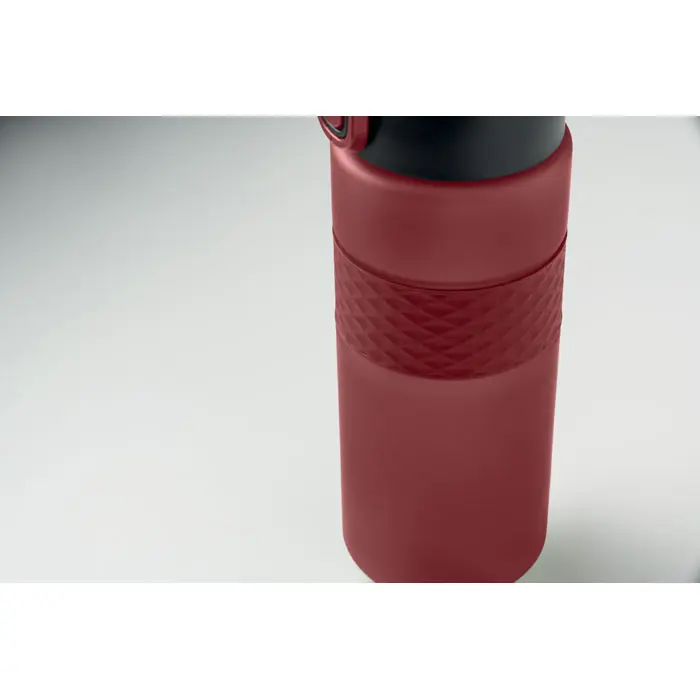 Drinking bottle made from RPET with silicone grip, PP flip-top lid and safety lock. Including integrated straw. Leak-free. Capacity: 700 ml.