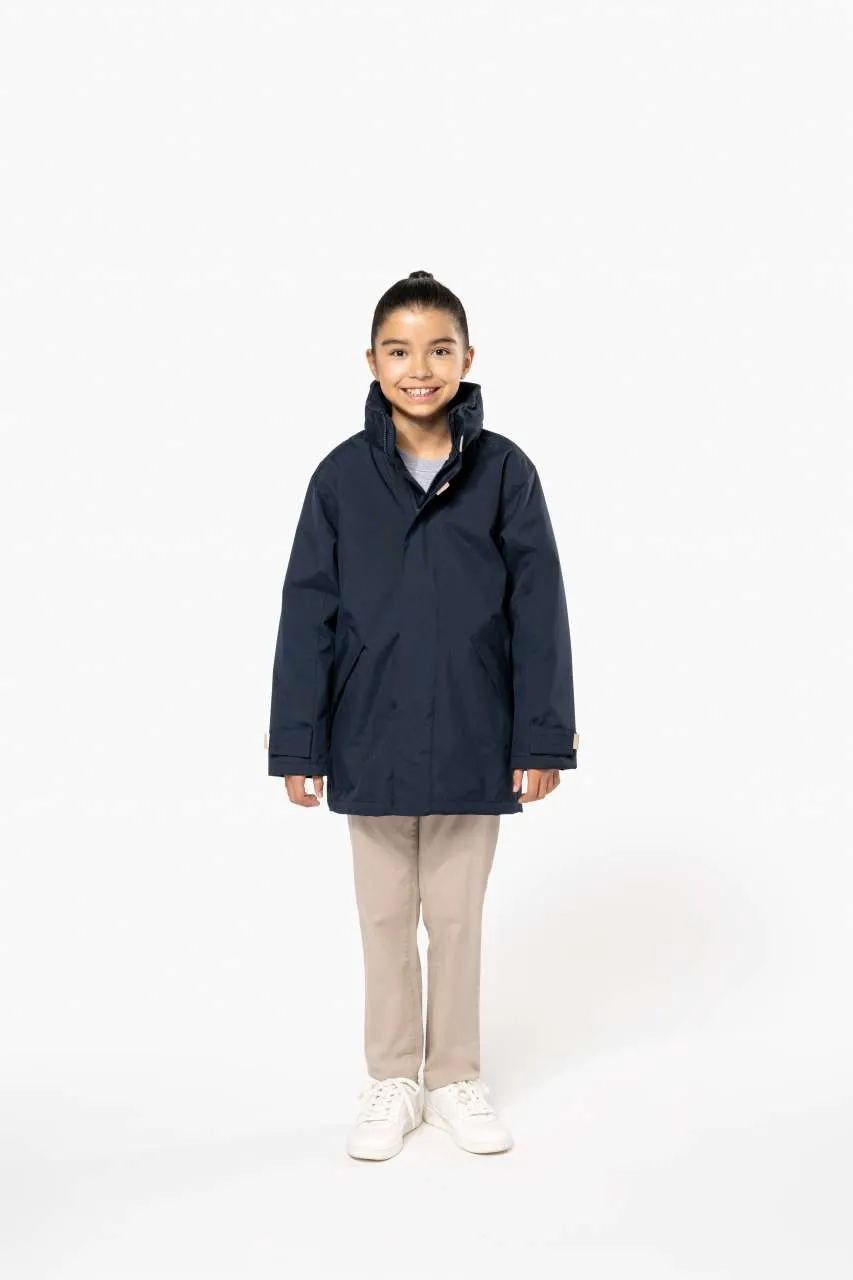100% polyester Oxford outer 100% quilted polyester lining Full zip with studded storm flap and tear release fastening 2 zipped side pockets 2 inner pockets, including 1 for mobile phone Concealed hood in fleece-lined collar Zip access for decoration