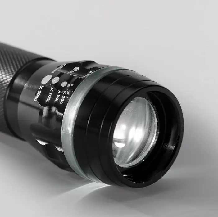 LED torch from the Colorado collection made of high quality aluminium emitting a focused light beam and zoom up to 5 meters and additionally equipped with alarm light (strobe). Three AAA batteries included.