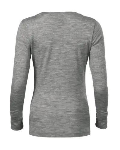 extra-fine merino wool, wrinkle-free and highly breathable fabric, thermoregulating and antibacterial features, the ability of moisture wicking and odor absorption, slim fit cut with side seams, deeper round neckline, narrow neckline hem from shell fabric, inner back neckline with a shell fabric tape, fixing shoulder seams, long sleeves with cuffs, drying horizontally recommended