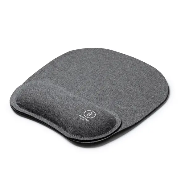 Mouse pad made of RPET material and with cushion, it is an eco-friendly and comfortable option for use with your PC or laptop's mouse. It also has a non-slip base made of rubber to ensure that it stays in place on the work surface. The top of the mouse pad is made of a soft and durable fabric made of RPET, which provides a smooth and quality surface for moving the mouse.The built-in cushion on the mouse pad offers additional wrist and forearm support and comfort during long sessions of mouse use.