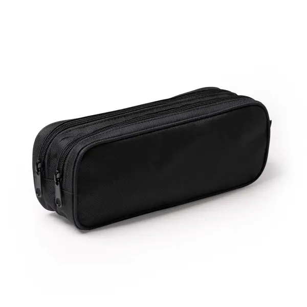 Pencil case in 300D RPET polyester with double compartment and zipper fastening.
