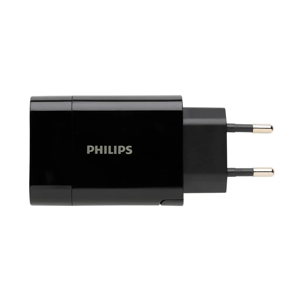 Philips super fast 30W wall adapter with power delivery. The charger comes with one USB 2A output port and one type C output that support power delivery fast charging. This will allow you to charge your mobile device in under one hour if it supports PD charging. Input 100-240V