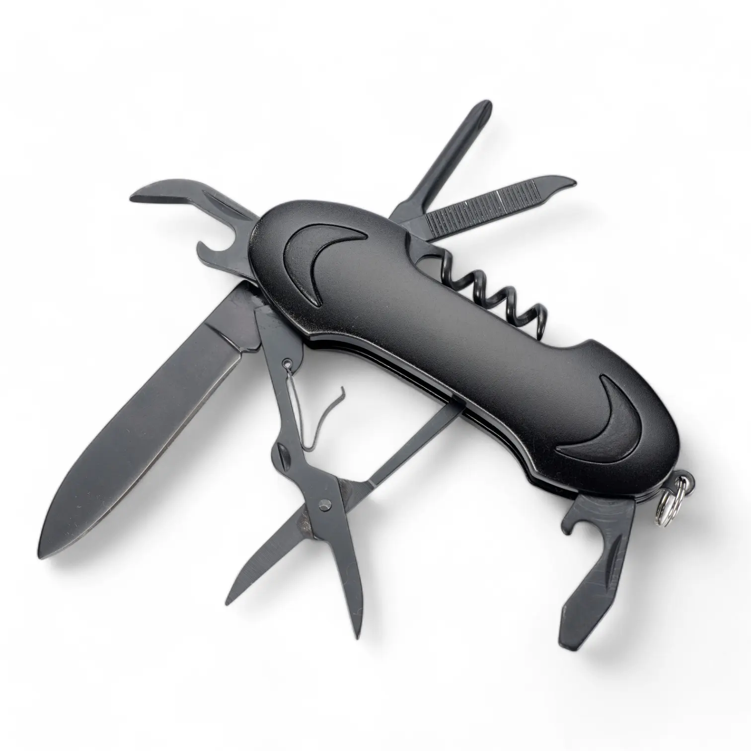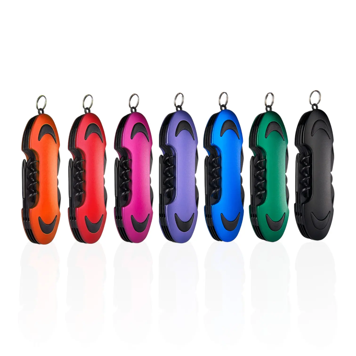 Reliable and durable Colorado pocket knife made of anodized metal offering a built-in corkscrew, a bottle opener, a cross screwdriver, a nail file and scissors.