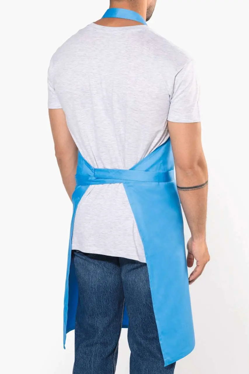 65% polyester / 35% cotton (Denim, Black Denim 65 % cotton / 35 % polyester) Domestic washing at 60°C Neck tie with metal buckle to adjust the length of the apron No pockets Dimensions: Length 90 cm - Width 76 cm Denim colours: this product has been specially treated and appears intentionally aged This manufacturing process results in colour variations between products and makes each piece unique Certifié STANDARD 100 by OEKO-TEX®N° CQ1007/8, IFTH