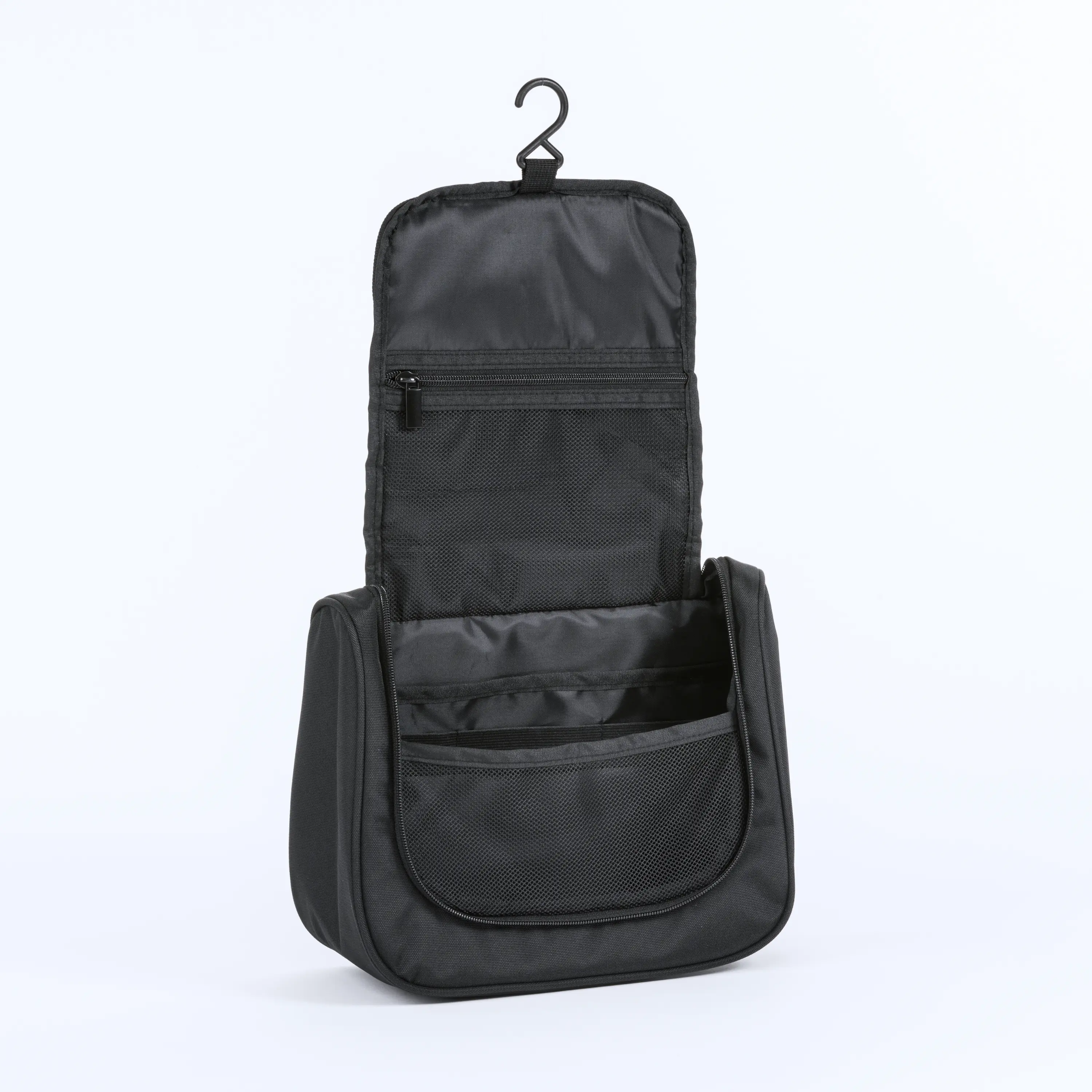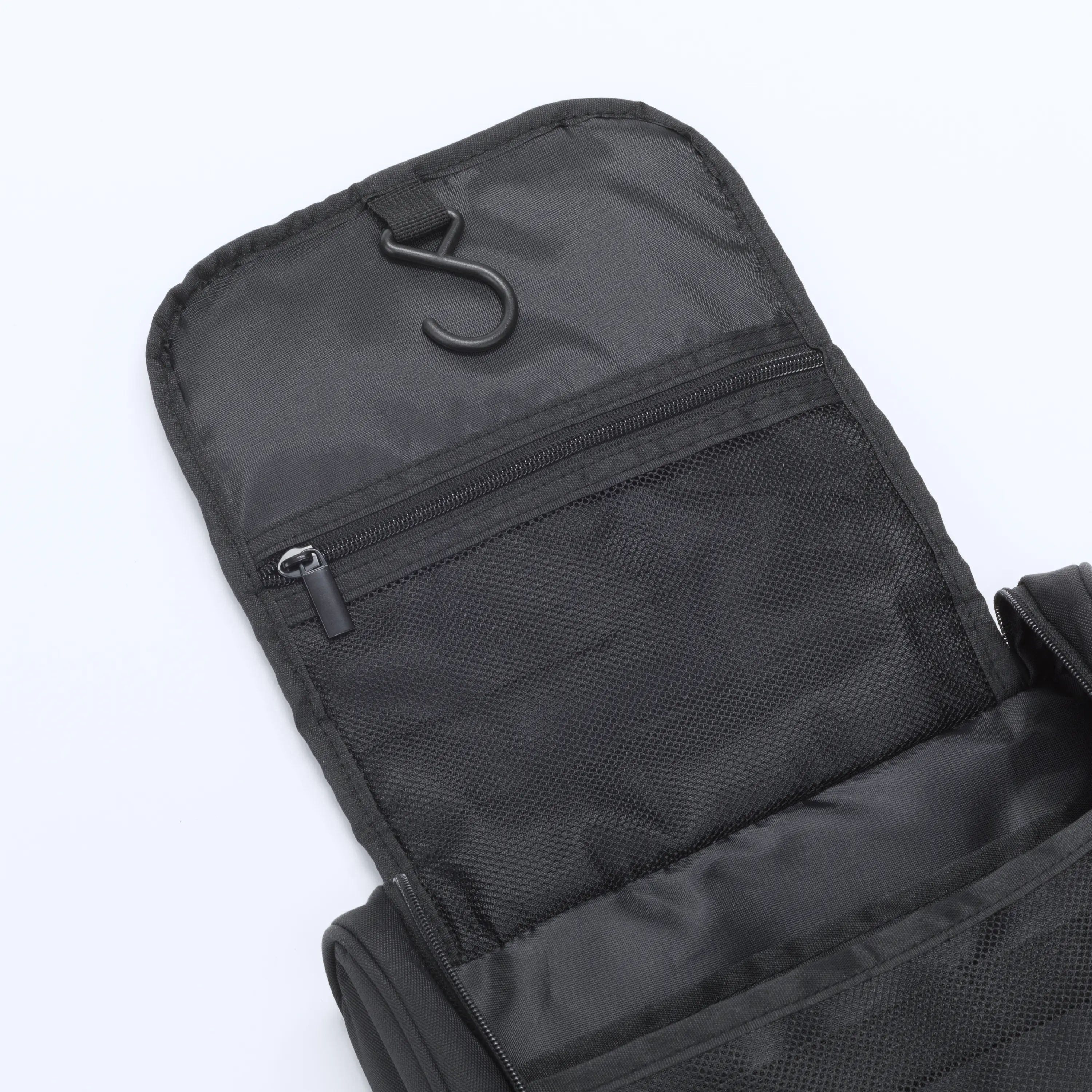 A functional and stylish accessory bag, perfect for storing cosmetics, hygiene items, and small essentials while traveling. With its thoughtful design and compact size, it is ideal for both short trips and longer journeys. • Modern design: Classic black color with minimalist detailing, giving the bag an elegant and professional look. • Spacious interior: Main compartment with multiple dividers to organize cosmetics and accessories with ease. • Additional pockets: Internal mesh dividers and a zippered pocket for storing small items. • Built-in hook: Allows the bag to be hung on a hanger or rod, ensuring easy access to its contents. • Durable construction: Made from sturdy, water-resistant material, resistant to daily wear and tear. • Convenient handle: Makes it easy to carry the bag by hand. This bag is the perfect solution for those who value organization and functionality while traveling. It ensures that all essential items are always within reach and also makes a great elegant gift.