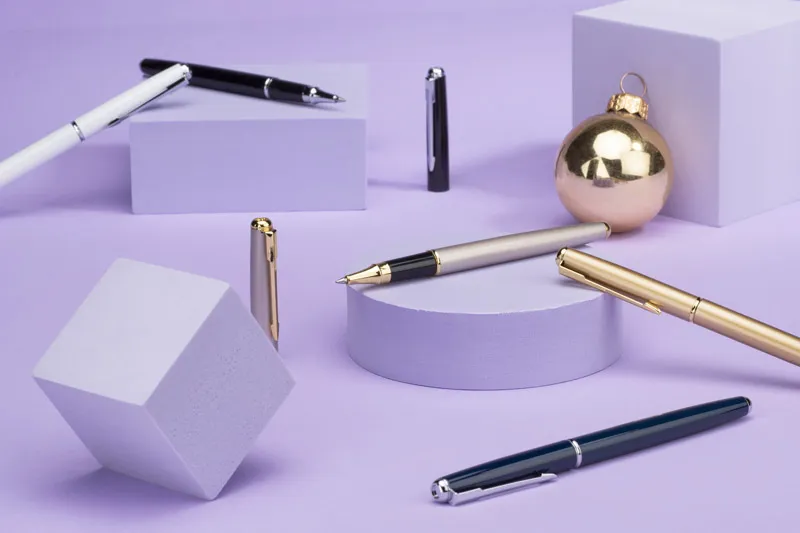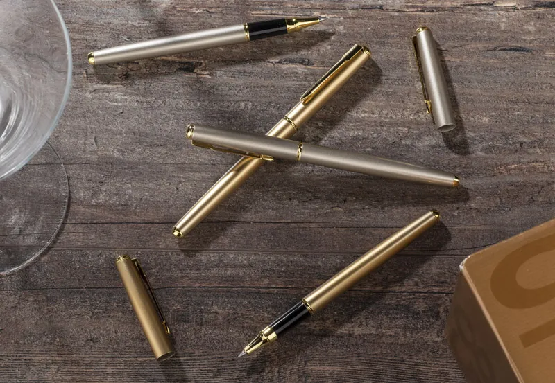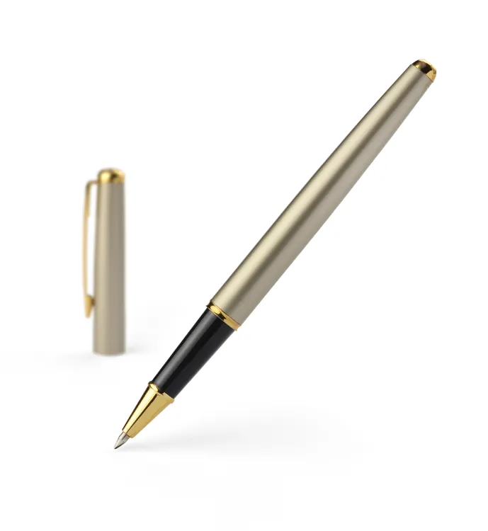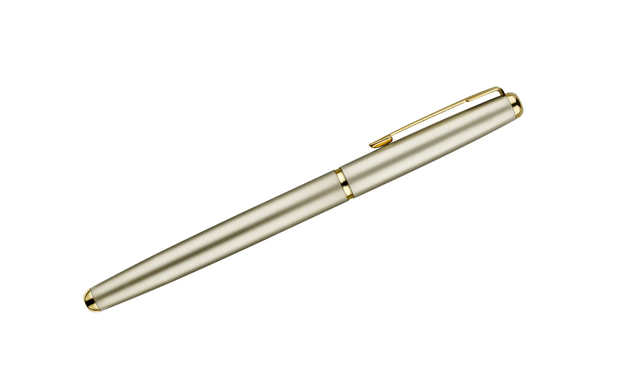 The ballpoint pen made of metal with golden finish. Classical pattern ensures timeless elegance.