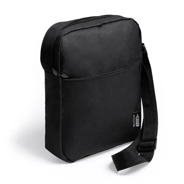 Shoulder bag in RPET polyester. Main compartment with 2 interior pockets and a front pocket. Adjustable carry strap.