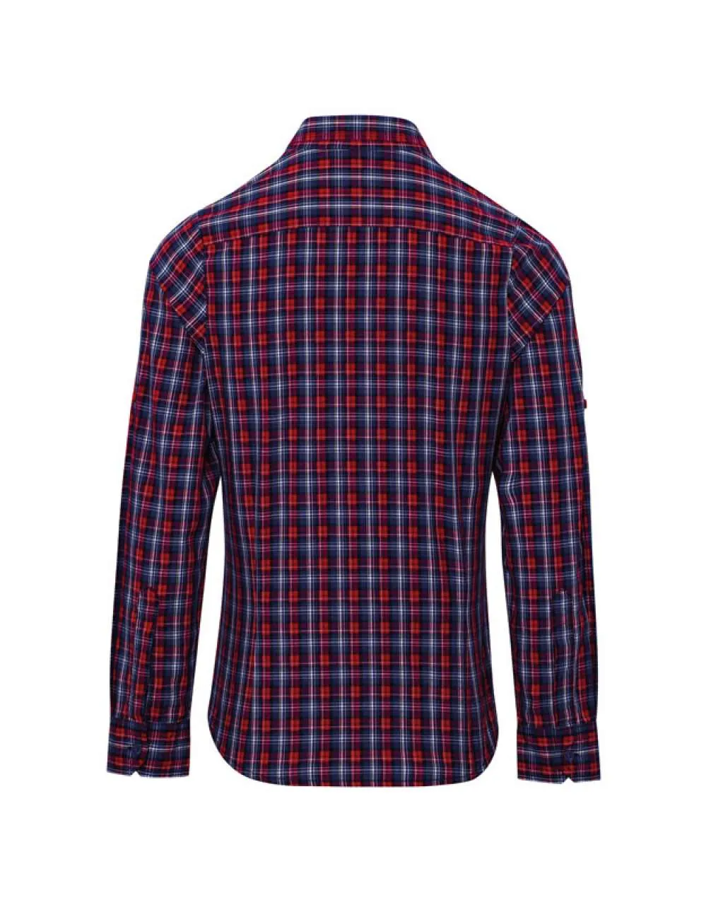 Fabric 100% Cotton Yarn Dyed Poplin 115gsm Features Roll sleeve option with button and tab fastening on the upper arm Double button cuff for full sleeve option Narrow soft collar styling Bust and back darts Modern fit