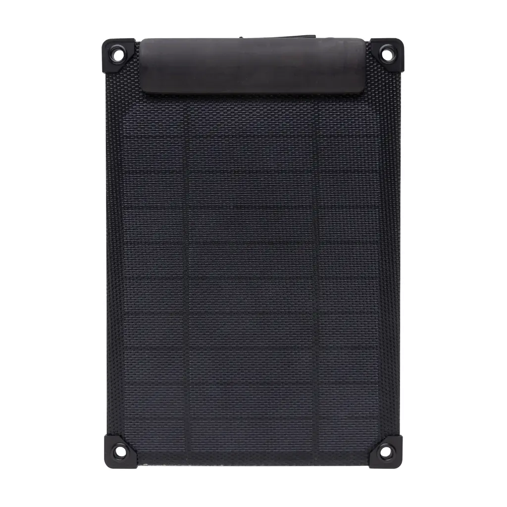 5W solar panel that allows direct charging to your mobile device, speaker, powerbank or other device. Simply connect your cable to the device while the panel is in sunlight and start charging. Charge rate depends on conditions. The panel uses high quality monocrystalline solar panels with 21% conversion rate. With USB A and Type C output ( max 5V/1A) and charge indicator to show charging speed. Charging speed solar: 5V/1000mA Made with PET material and RCS certified recycled ABS. Including integrated stand function to use the solar panels at an optimal angle. IPX 6 waterproof. Packed in FSC® mix packaging.