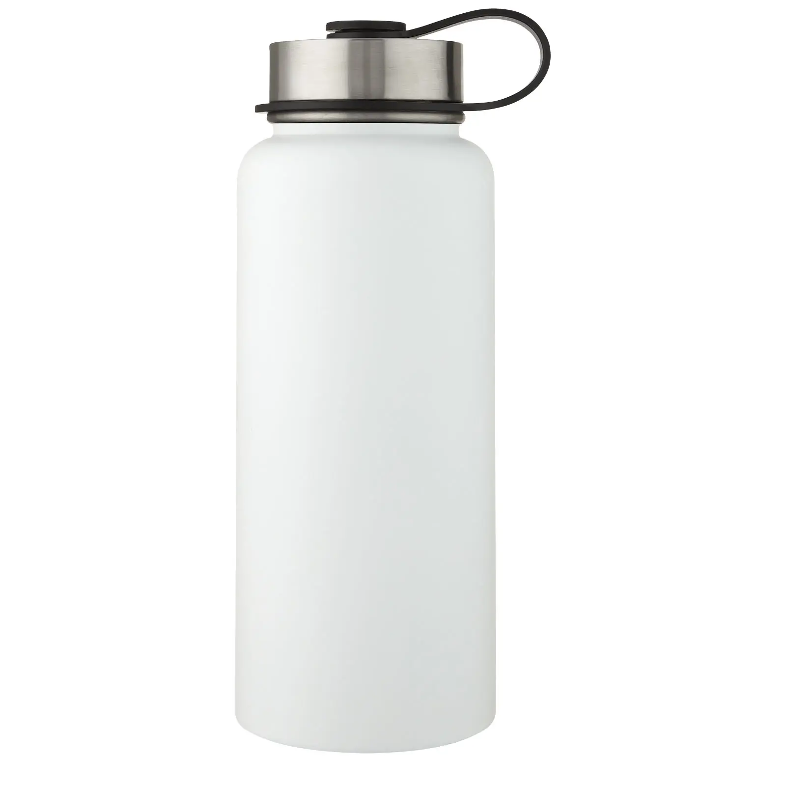 Two-in-one double-walled stainless steel sport bottle with copper vacuum insulation featuring 2 lids: one lid with a straw for easy drinking and one leakproof screw-on lid with handling loop. The insulated 18/8 stainless steel construction prevents condensation on the outside of the bottle, and the on-trend powder coating finish makes it extra durable. Wide opening mouth for easy filling, pouring and cleaning. BPA-free, tested and approved under German Food Safe Legislation (LFGB). Tested and approved for phthalates content according to REACH regulations. Perfect for ice cubes. Volume capacity is 1 litre. Hand wash recommended. Presented in a recycled cardboard gift box.