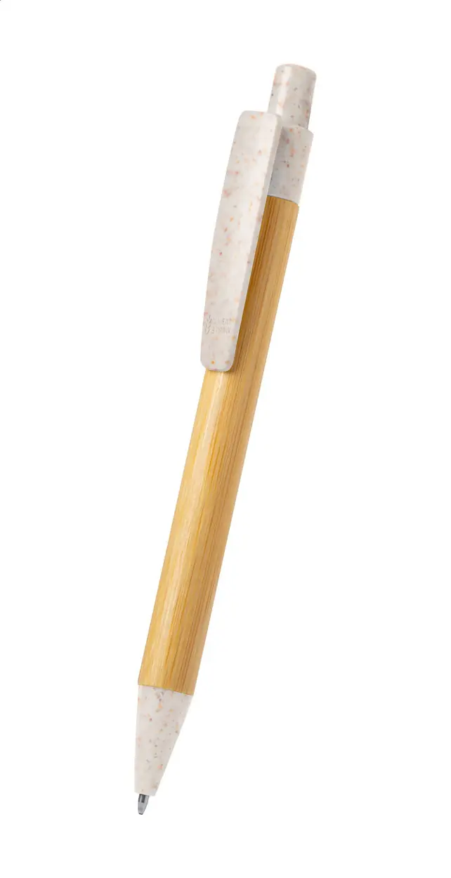 Bamboo ballpoint pen with ecological wheat straw plastic clip and tip. With blue refill.
