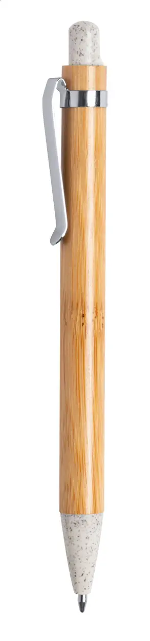 Bamboo ballpoint pen with ecological wheat straw plastic parts and metal clip. With blue refill.