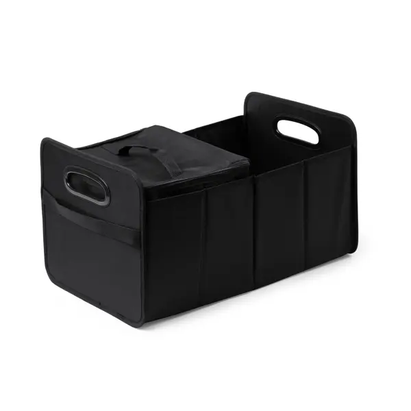 Foldable boot organizer made of 600D polyester with reinforced handles. 2 main compartments and outer pocket. It includes a 12L removable cooler with isothermal interior.