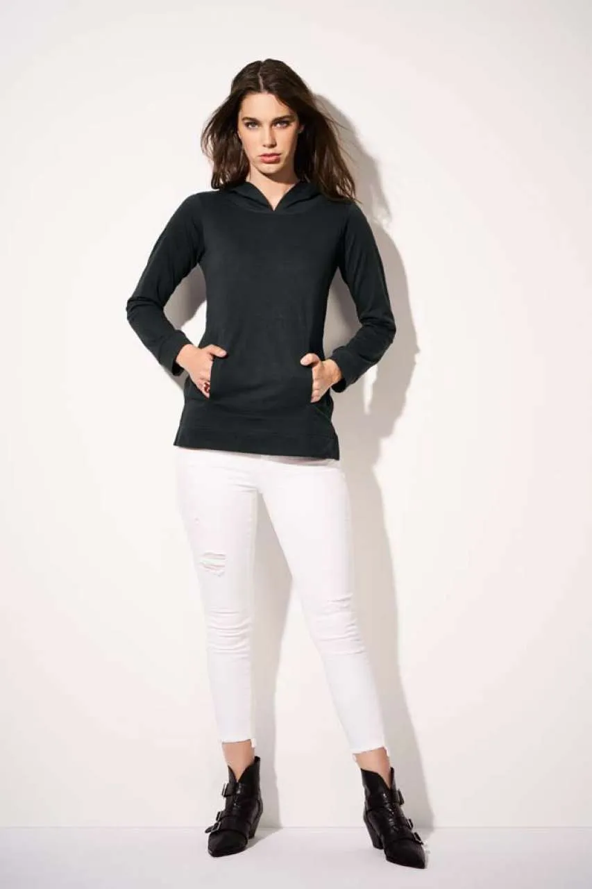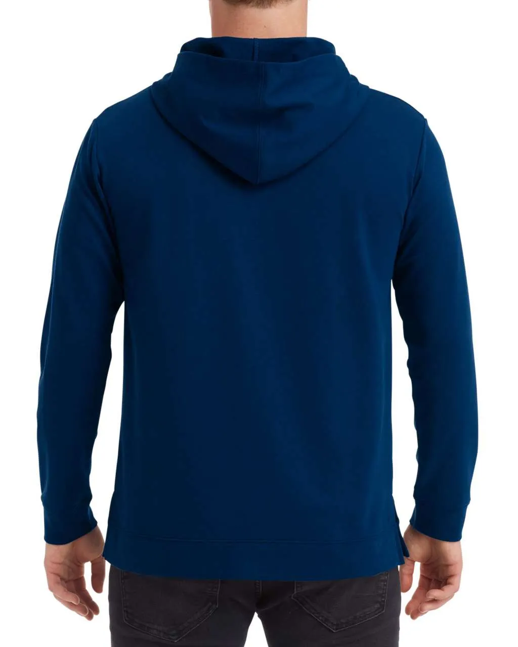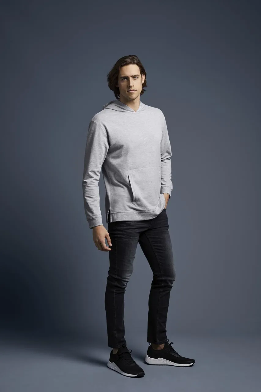 186.0 G/SqM 60% Combed Ring Spun Cotton, 40% Polyester Yarn Count 32/1 High stitch density for a smoother printing surface Semi-fitted with side seam construction Unlined hood Self-fabric back neck tape 1x1 rib spandex cuffs and waistband Open bottom with 10.2 cm side vents Inside patch pocket with welt pocket opening Tearaway label Oeko-Tex® Standard 100 Certified