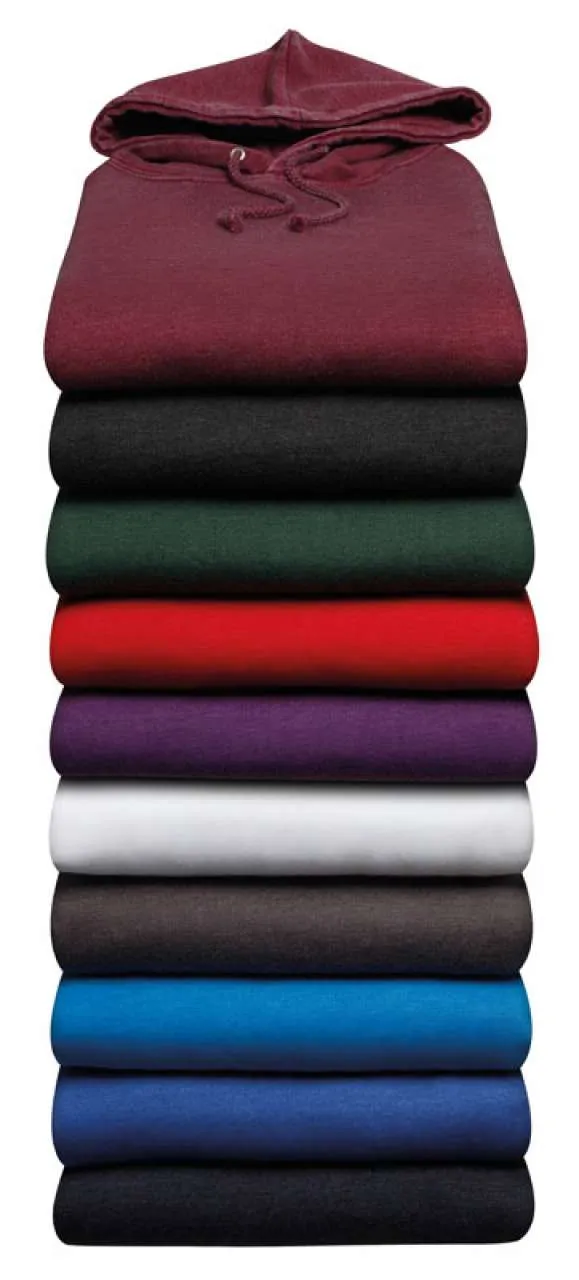 55% Cotton/45% Polyester Washed effect Soft touch Garment washed round drawcords Twin needle stitching detail Double fabric hood Kangaroo pouch pocket Ribbed cuffs and hem Twill main back neck label Soft cotton faced fabric creates ideal printing surface Due to washing process each garment is unique Worldwide Responsible Accredited Production (WRAP) certified production