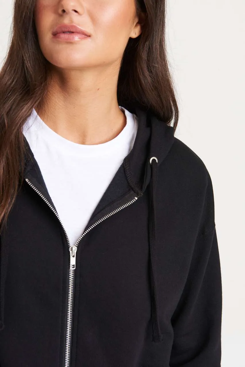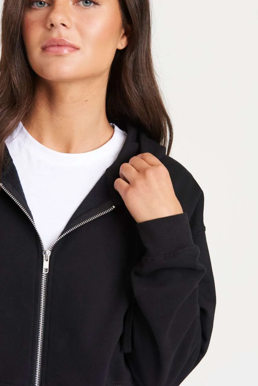 80% Ringspun Cotton/20% Polyester Relaxed fit Cropped cut with drop shoulder design Full front Metal YKK Zip Ribbed cuffs and hem Brushed inner fleece Double fabric hood Flat lace drawcords Twin needle stitching detail Tear away label 100% cotton faced fabric