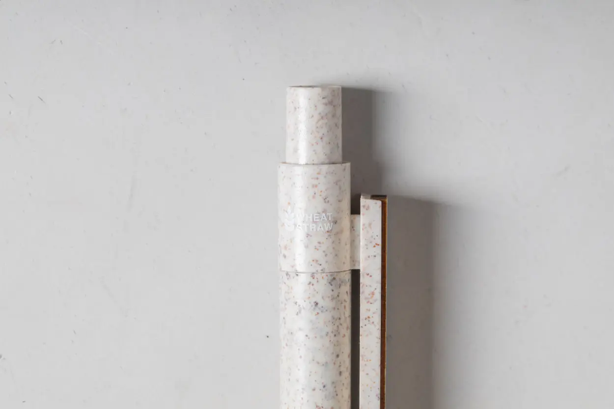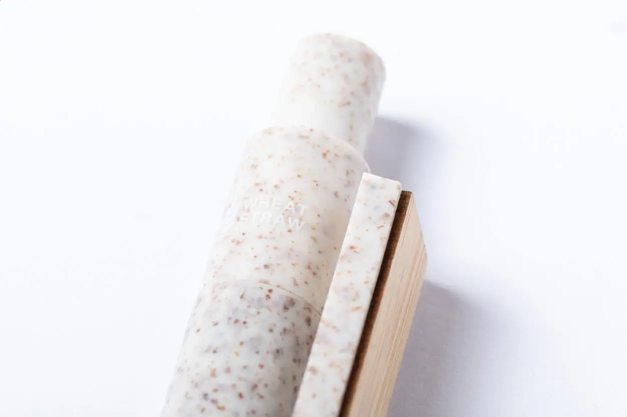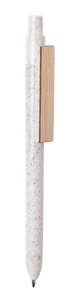 Ecological wheat straw plastic ballpoint pen with bamboo clip. With blue refill.