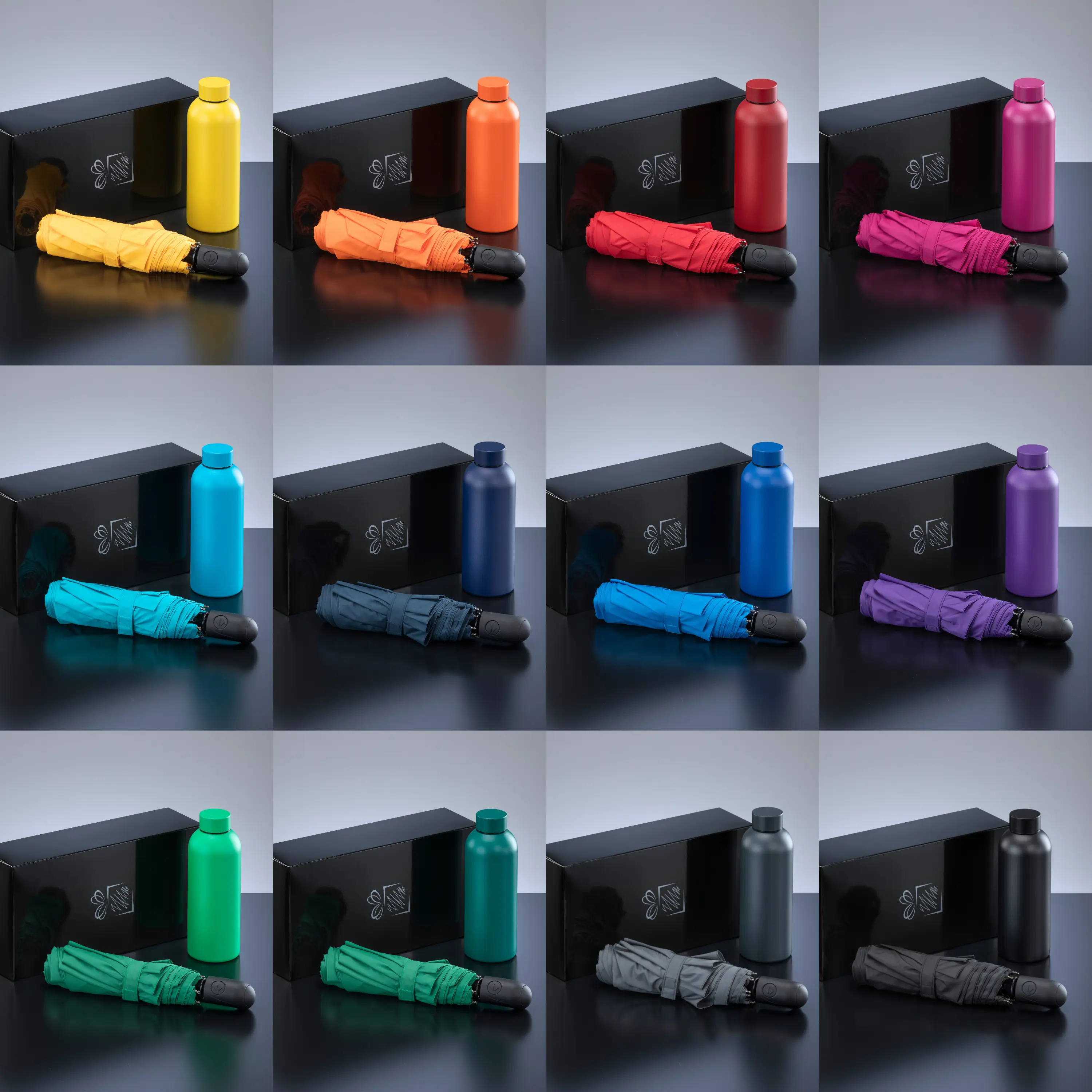 active set: thermal water bottle and automatic umbrella