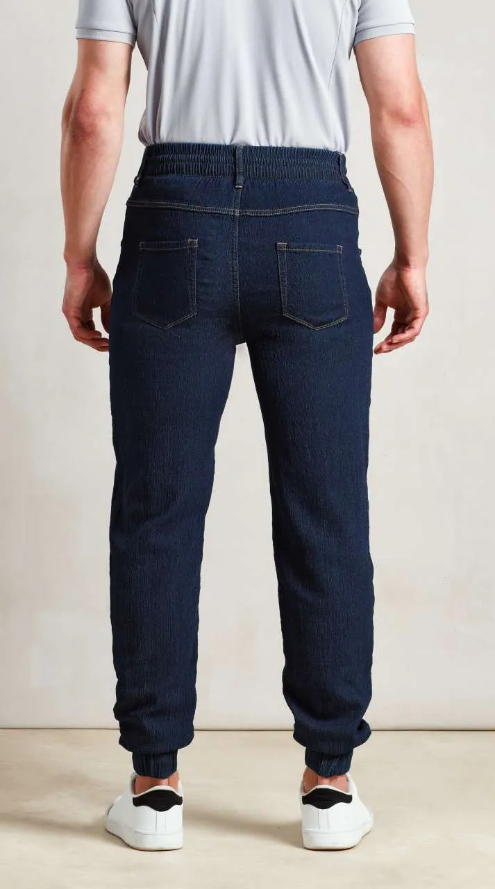 Fabric 87% Cotton, 12% Polyester, 1% Elastane Knit 230gsm Features Cuffed ankle Elasticated waistband, drawcord and belt loops Side and back pockets Soft and stretchy fabric