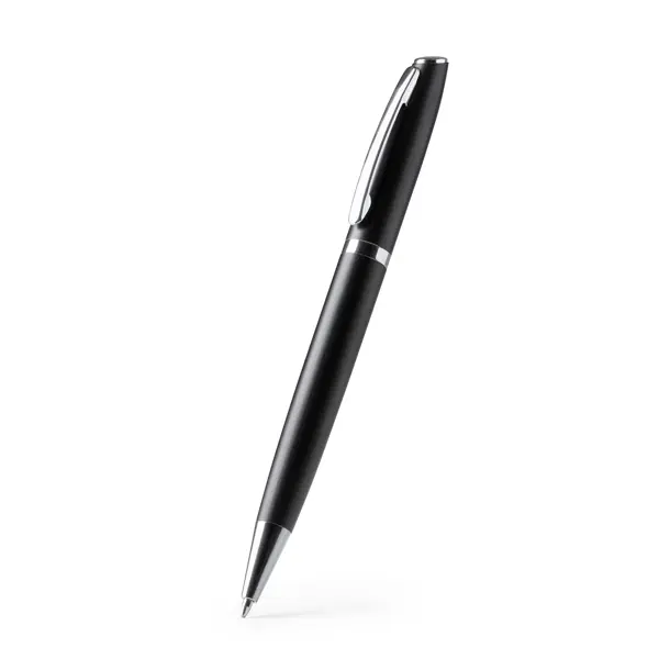 Elegant twist ball pen with body in recycled aluminium and metal details. Blue ink jumbo refill.