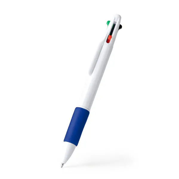 Promotional retractable 4-ink ball pen. Body in ABS with soft colour grip. Blue, black, red and green ink.