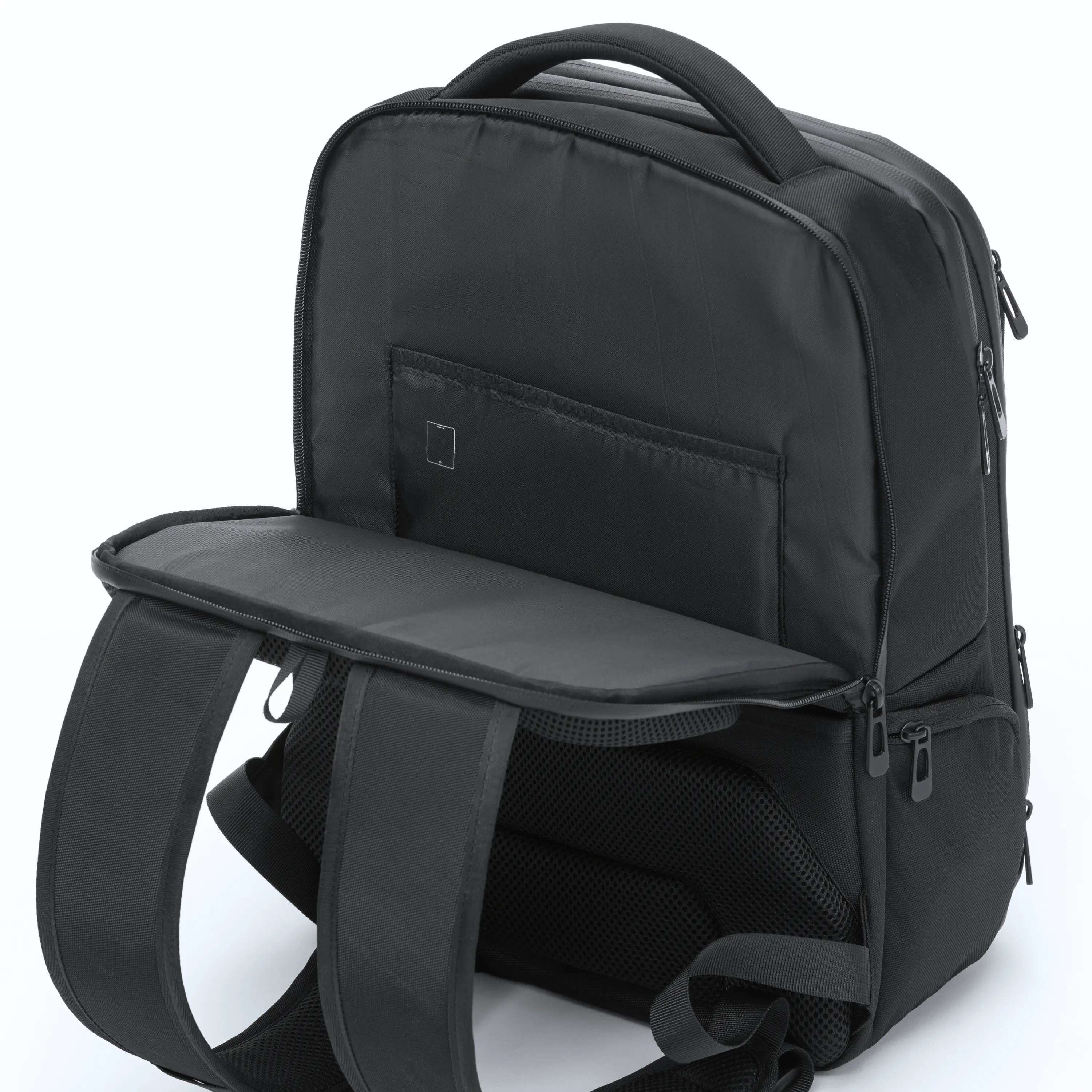 The four-compartment BIZZ PRO backpacks are designed for durability, functionality, and comfort. Made from high-quality materials, they provide excellent device protection and ease of use for work, business trips, and daily life. They are the perfect combination of style and practical solutions. Features: • Made from damage-resistant 1260D polyester with reinforced walls for added protection of contents. • Padded compartments for laptops up to 15 inches and tablets, ensuring secure storage of your devices. • The clamshell opening allows the backpack to lay flat, making packing and unpacking easier. • Inside the main compartment, adjustable cross straps with a buckle keep your items securely in place, preventing shifting during travel. • Multiple internal dividers and external pockets for excellent organization of items. • A front zippered pocket for quick access to small accessories. • A breathable back system that increases airflow and minimizes sweating. • Padded, adjustable shoulder straps ensuring comfortable wear. • A convenient handle for easy carrying of the backpack by hand. • Waterproof zippers to protect the contents from rain and moisture. • A strap for attaching the backpack to a suitcase, perfect for travel. • A hidden zippered pocket on the back of the backpack. • A metal plate on the front panel, designed for your logo. • Strong stitching and premium materials ensure long-lasting durability. • Capacity: 24 L.