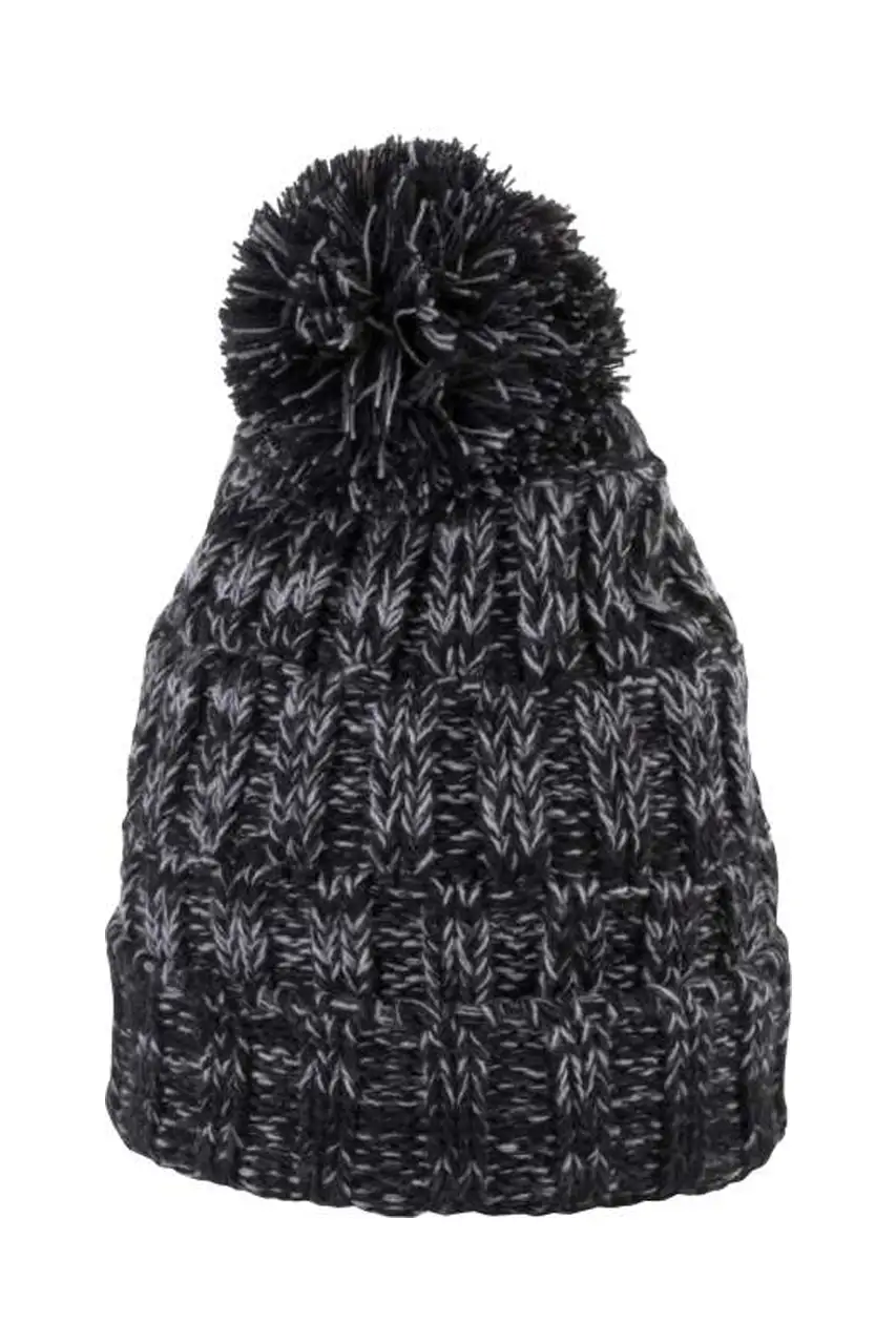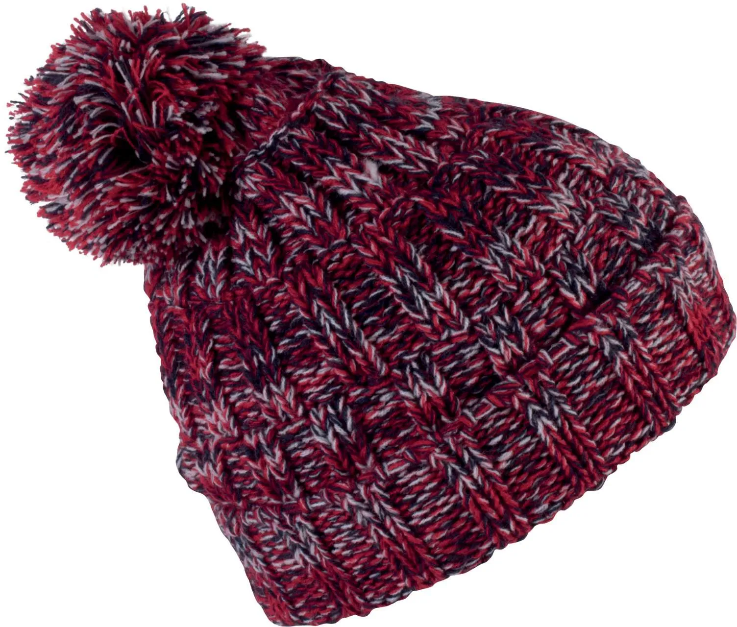 100% acrylic Bobble beanie with turn-up Hand-knitted look with 3 different coloured yarns