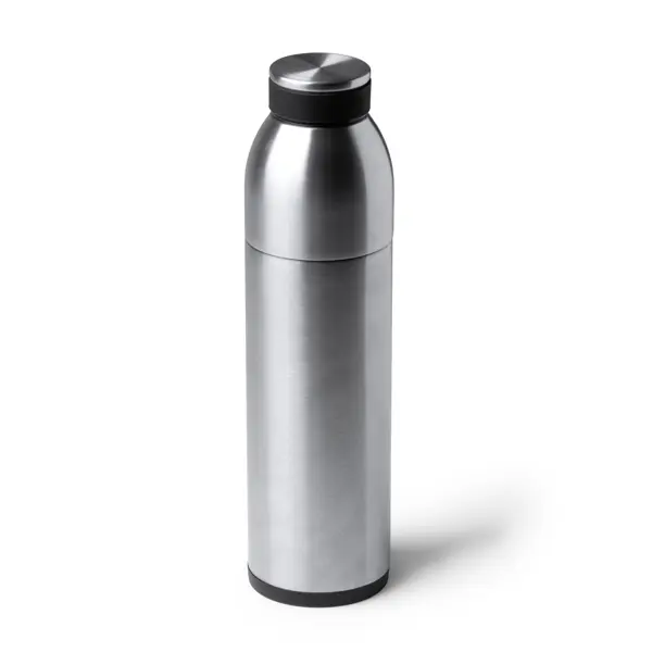 2-in-1 thermal bottle. Double wall with convertible cup in 304 stainless steel. 650 ml bottle capacity, 500 ml cup capacity. Presentation in design box.