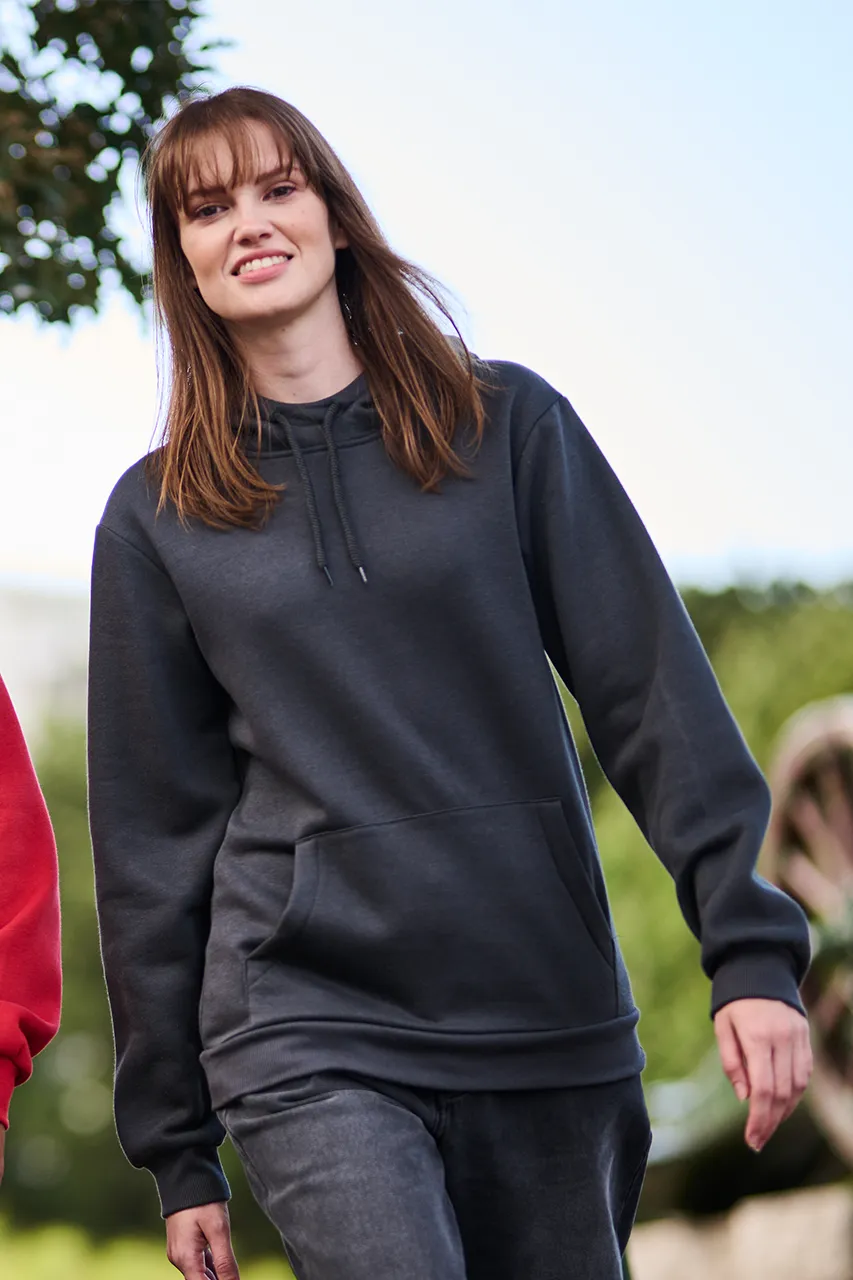 Fabric Information 35% sustainable cotton and 65% polyester brush-back sweat Special Features Kangaroo style lower pocket