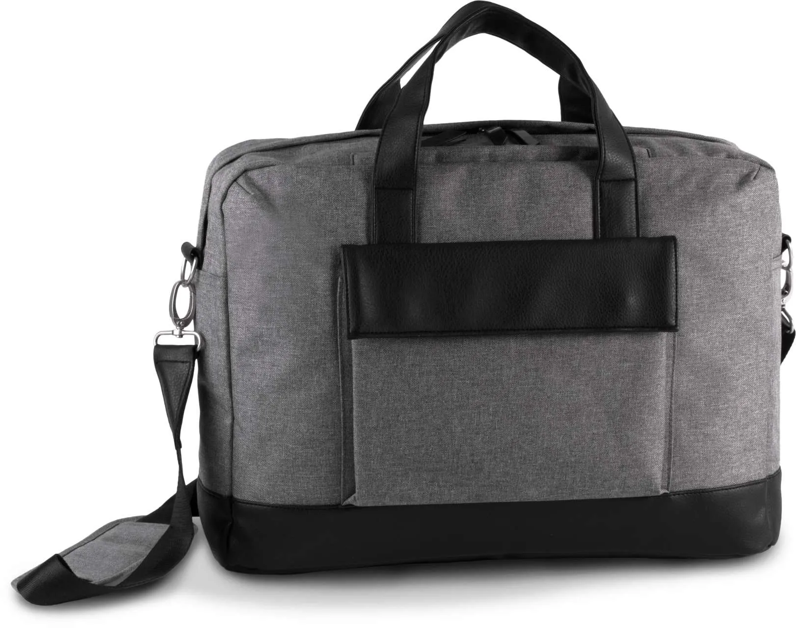 Laptop bag in 600D polyester Bottom, handles and front flap in polyurethane Padded compartment to fit up to 15" laptops and padded zipped pocket to insert a tablet 2 inner pockets 1 zipped pocket at the top of the bag to fit mobile phone 1 front pocket with flap and press studs Loop at the back to fit bag on trolley Removable shoulder strap