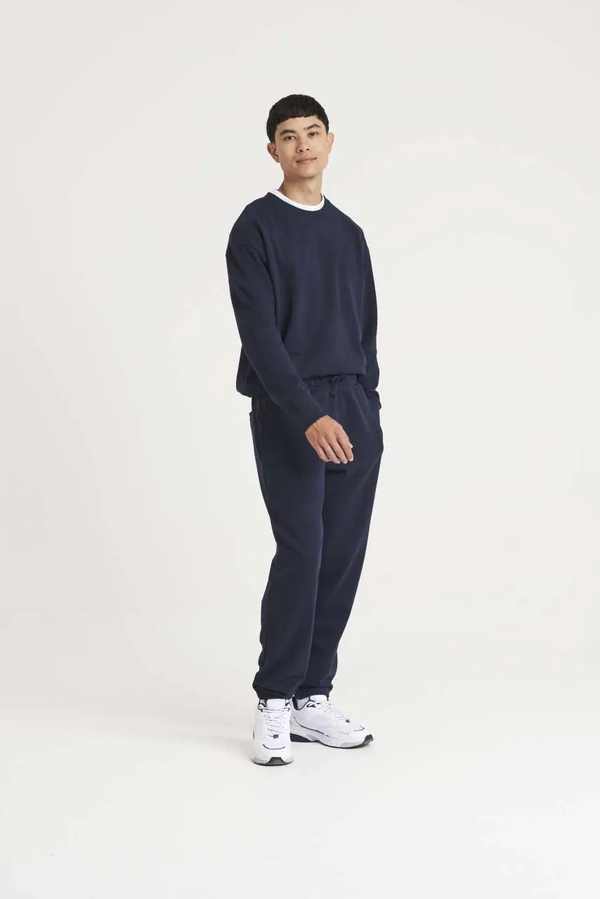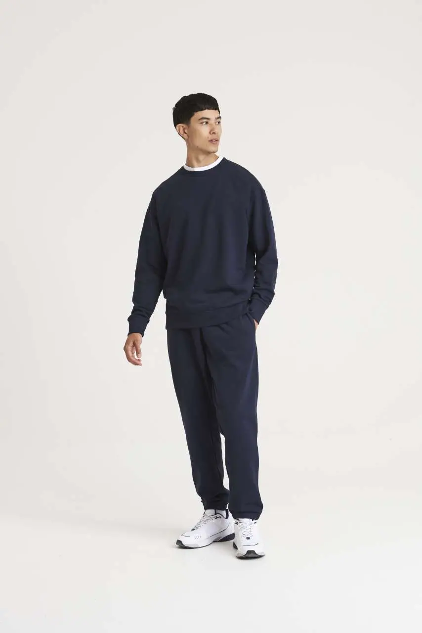 70% Recycled Cotton*30% Recycled Polyester Crew neck sweat Peached face Brushed inner fleece Size tab only Relaxed fit Unisex Taped back neck Set in Sleeves