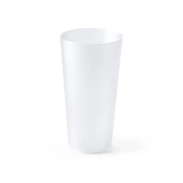 Reusable flexible PP cup with 400ml capacity. Translucent finish.