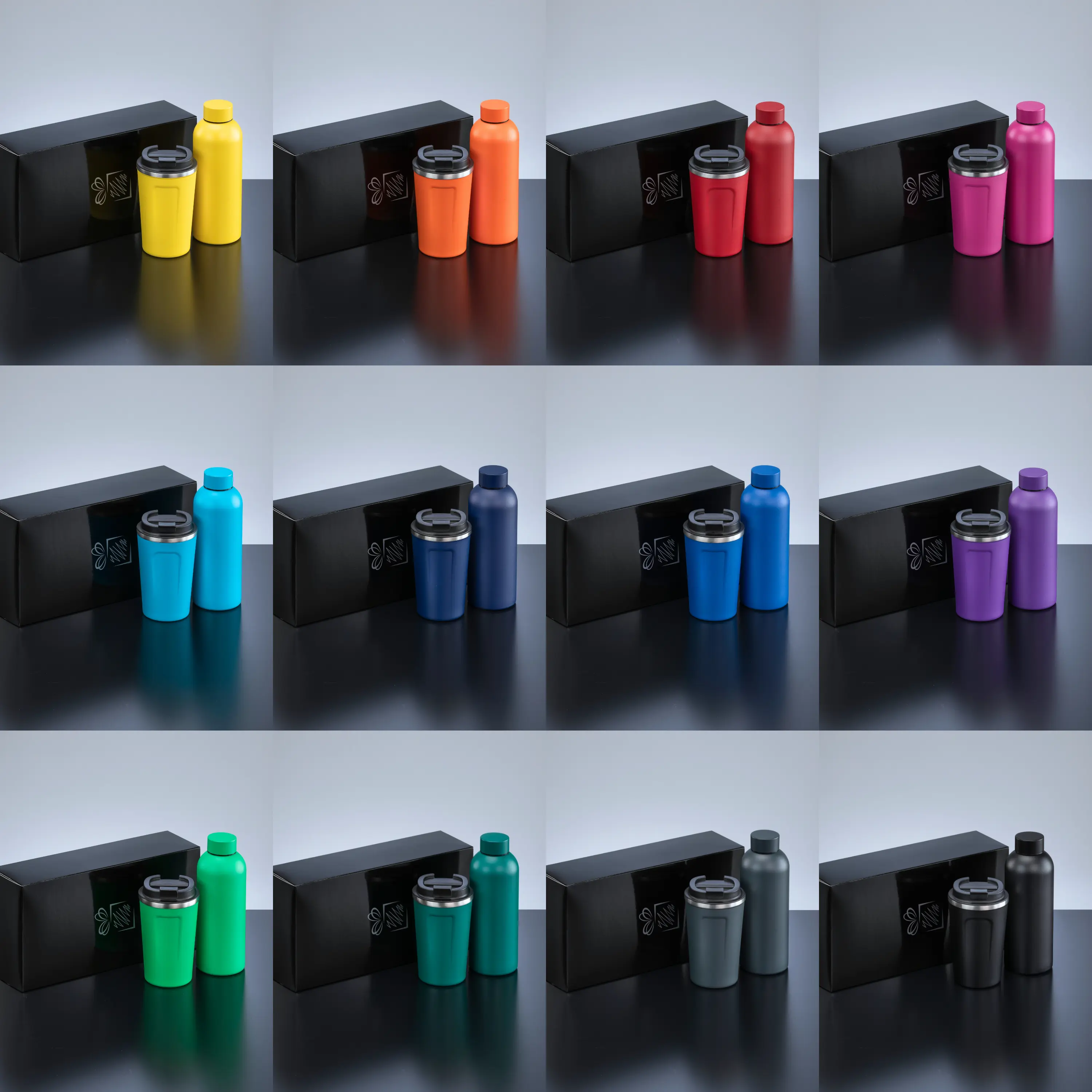 A practical set for outdoor activities, it contains a Nordic coffee mug (350ml capacity) and a Nordic thermal water bottle (500ml capacity). The Nordic thermal mug provides excellent thermal insulation capabilities (up to 12 hours low temperature, up to 6 hours high temperature). Both products are made of the highest quality 18/8 stainless steel, resistant to acids and carbonates, from a Korean company POSCO, combining durability with a sleek aesthetic, resistant to acids and carbonates. The solid powder coated finishing of both items ensures resistance to mechanical damage, and also guarantees a safe grip. Products are certified for food contact and are BPA-free. The set is packed in an elegant black box.