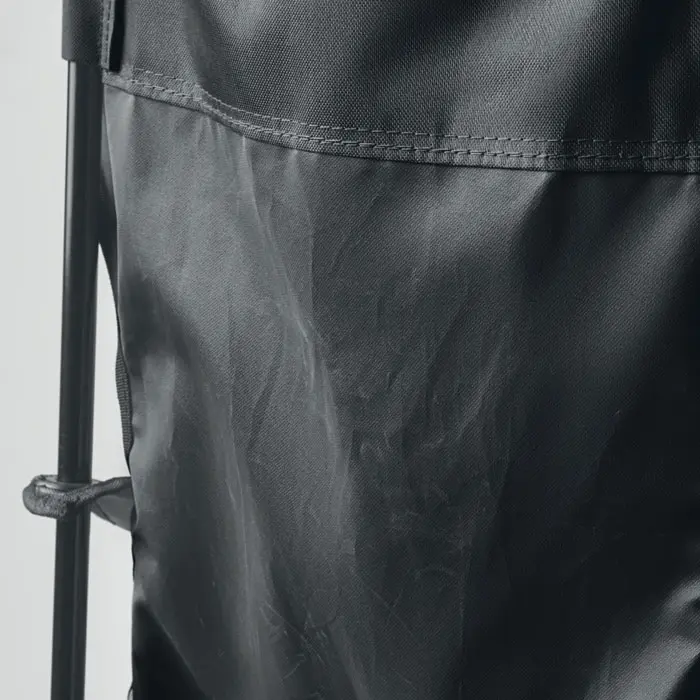Outdoor chair in 600D polyester clothing and iron frame. Nylon pouch included to store the chair. Max. weight 100 kg.