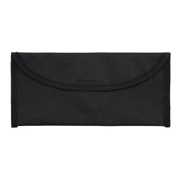 Travel document bag with velcro fastening and practical belt loop, in 600D polyester.