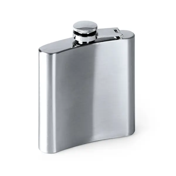 Stainless steel flask with safety anti-drip closure. 175 ml capacity.